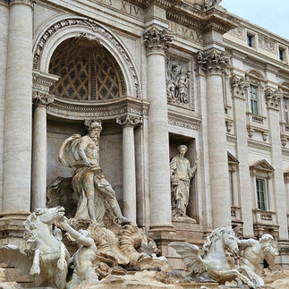 Trevi Fountain was empty. All that was in it was three guys scrubbing it clean and sweeping the coins up. The statues are gorgeous. It's weirdly located down a little narrow unobtrusive cobbled street.